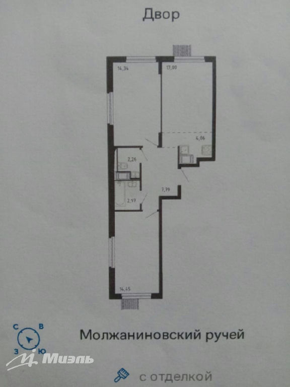 Комнаты: 14.45 14.35 м2